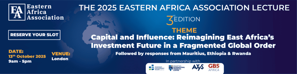 The Eastern Africa Association’s Annual Lecture exists not for advocacy but to test assumptions and set direction bringing institutional investors, fund managers, DFIs, corporates, government leaders and professional advisers together to examine how finance, trade, energy and geopolitics now intersect in East Africa, and how business can position for long‑term opportunity and to clarify the region’s investable propositions and to define the terms of engagement for a decade in which capital will become more selective, more disciplined, and more decisive.